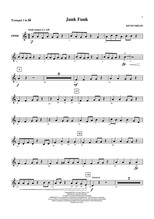 "Junk Funk - Trumpet 1 in Bb" Sheet Music by Kevin Mixon