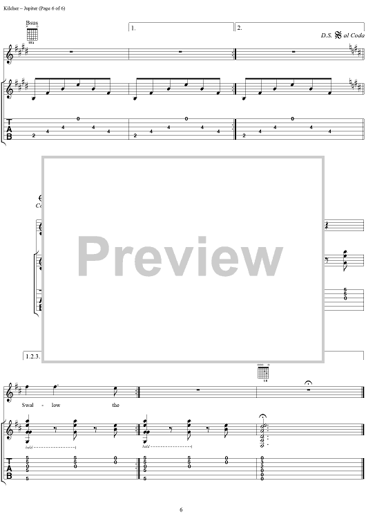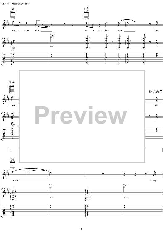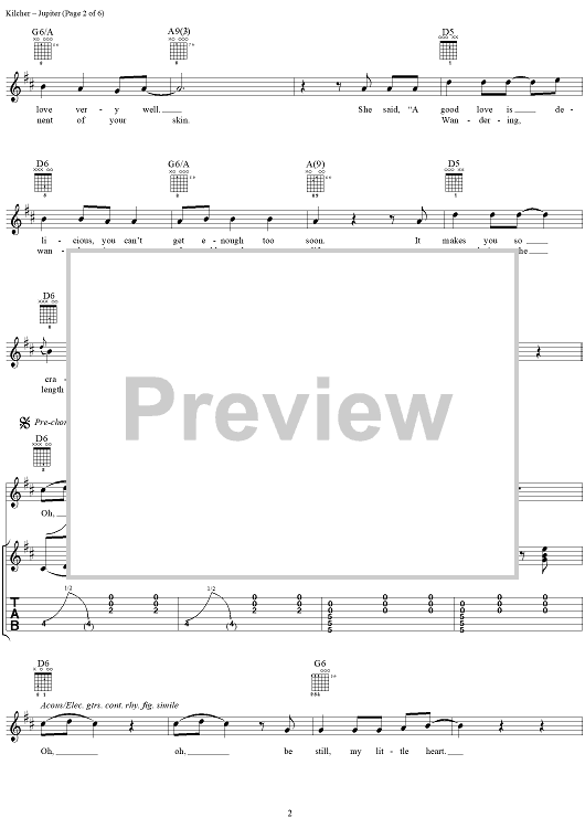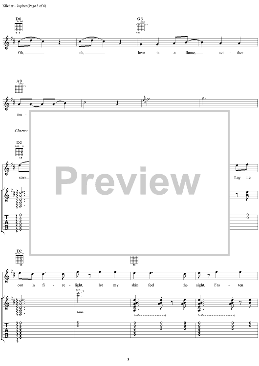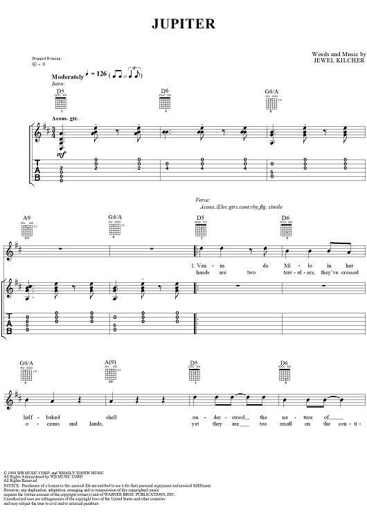 Digital Sheet Music for Jupiter by Jewel scored for Guitar Tab/Vocal; id:113852