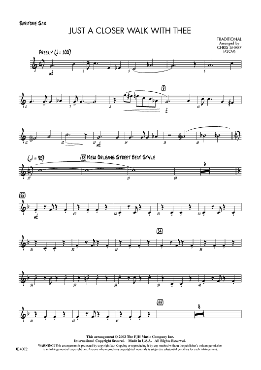 Digital Sheet Music for Just a Closer Walk with Thee - Baritone Sax by Traditional, Chris Sharp scored for Jazz Ensemble; id:455740