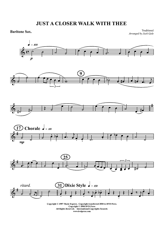 "Just a Closer Walk With Thee - Baritone Sax" Sheet Music by Traditional