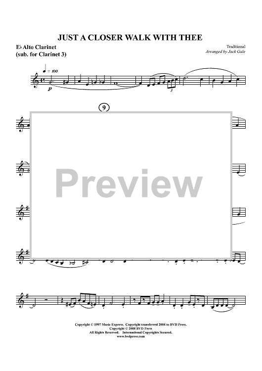 Digital Sheet Music for Just a Closer Walk With Thee - Clarinet 3 in B-flat (op. Alto Cl.) by Traditional, Jack Gale scored for Clarinet Quartet; id:404890