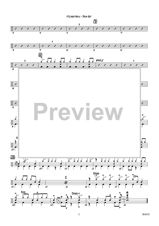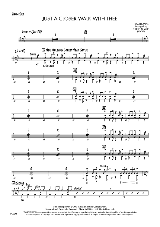 Digital Sheet Music for Just a Closer Walk with Thee - Drum Set by Traditional, Chris Sharp scored for Jazz Ensemble; id:455752