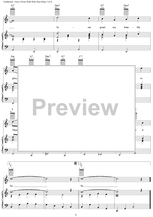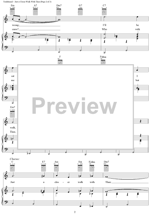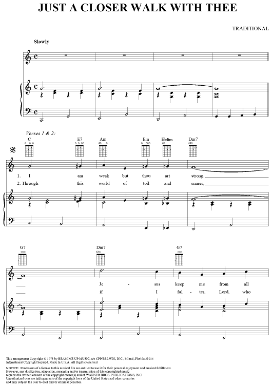 Digital Sheet Music for Just a Closer Walk with Thee by Traditional scored for Piano/Vocal/Chords; id:132919