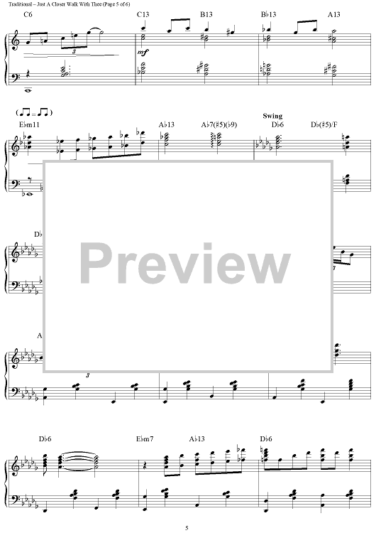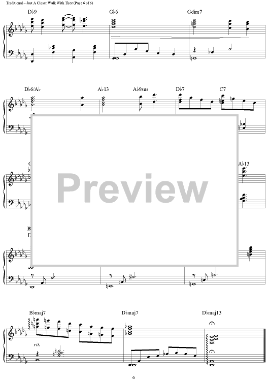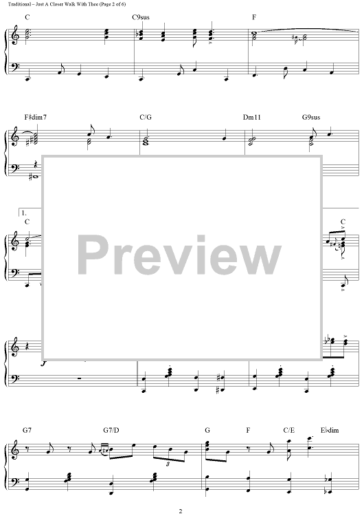 "Just A Closer Walk With Thee" Sheet Music by Traditional