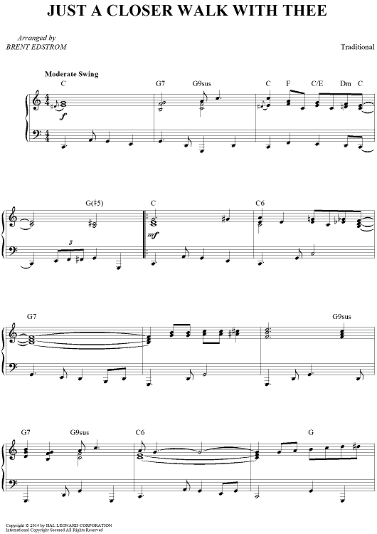 Digital Sheet Music for Just A Closer Walk With Thee by Traditional, Brent Edstrom scored for Piano Solo; id:462780
