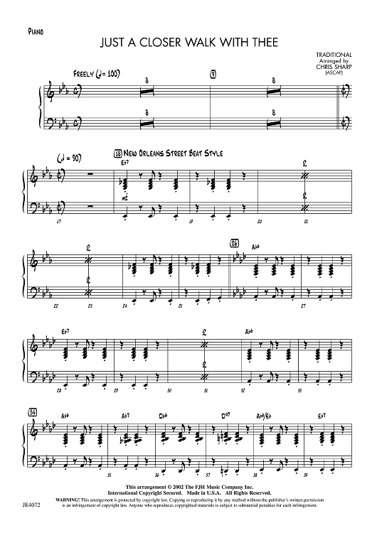 Digital Sheet Music for Just a Closer Walk with Thee - Piano by Traditional, Chris Sharp scored for Jazz Ensemble; id:455750