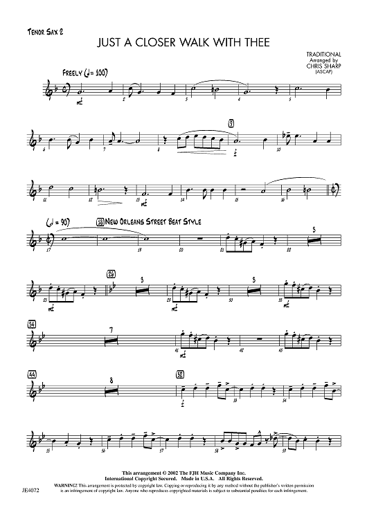 Digital Sheet Music for Just a Closer Walk with Thee - Tenor Sax 2 by Traditional, Chris Sharp scored for Jazz Ensemble; id:455739