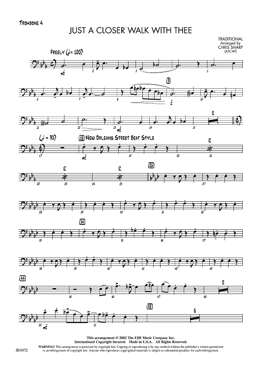 Digital Sheet Music for Just a Closer Walk with Thee - Trombone 4 by Traditional, Chris Sharp scored for Jazz Ensemble; id:455748