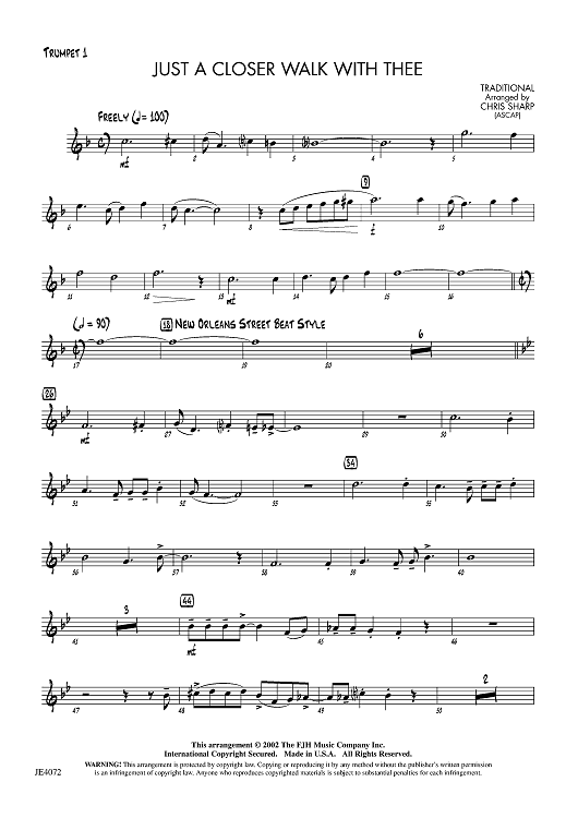 Digital Sheet Music for Just a Closer Walk with Thee - Trumpet 1 by Traditional, Chris Sharp scored for Jazz Ensemble; id:455741