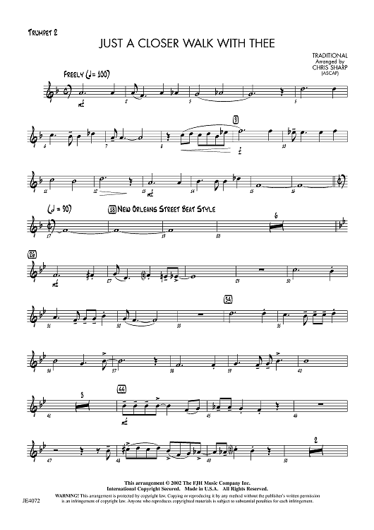 Digital Sheet Music for Just a Closer Walk with Thee - Trumpet 2 by Traditional, Chris Sharp scored for Jazz Ensemble; id:455742