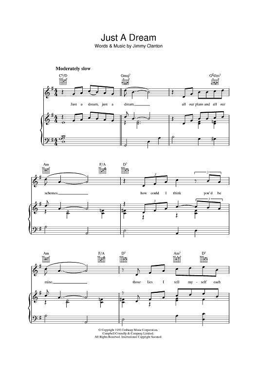 Digital Sheet Music for Just A Dream by Jimmy Clanton scored for Piano/Vocal/Chords; id:395611