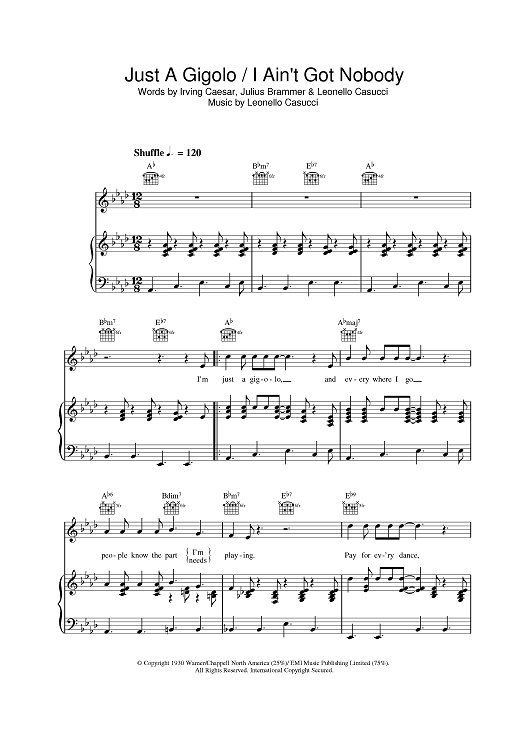 Digital Sheet Music for Just A Gigolo / I Ain't Got Nobody by David Lee Roth, Irving Caesar, Julius Brammer, Leonello Casucci scored for Piano/Vocal/Chords; id:387842