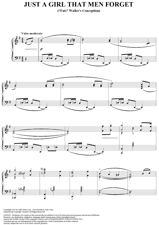 "Just a Girl That Men Forget (''Fats'' Waller's Conception)" Sheet Music by Fats Waller