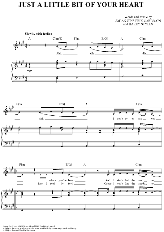 Digital Sheet Music for Just A Little Bit of Your Heart by Harry Styles, Ariana Grande, Johan Carlsson scored for Piano/Vocal/Chords; id:457414