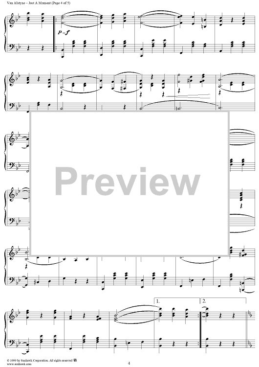 Digital Sheet Music for Just a Moment by Egbert Van Alstyne scored for Piano Solo; id:117978