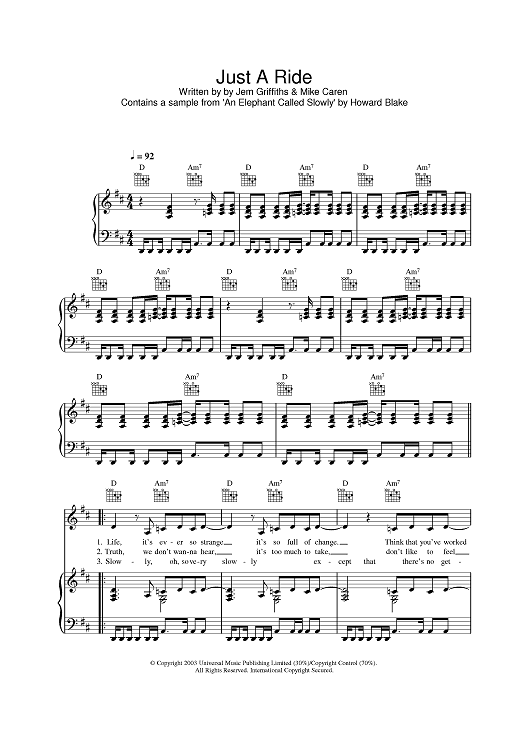 Digital Sheet Music for Just A Ride by Jem Griffiths, Howard Blake, Mike Caren, Jem scored for Piano/Vocal/Chords; id:383640