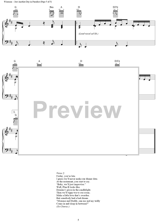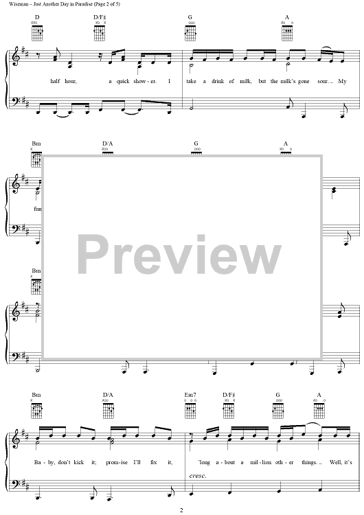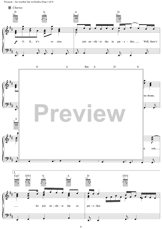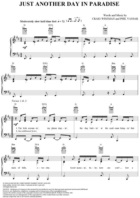 Digital Sheet Music for Just Another Day in Paradise by Craig Wiseman, Phil Vassar scored for Piano/Vocal/Chords; id:241789