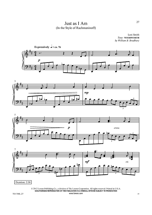 Digital Sheet Music for Just as I Am (In the Style of Rachmaninoff) by William B. Bradbury, Lani Smith scored for Piano Solo; id:433589