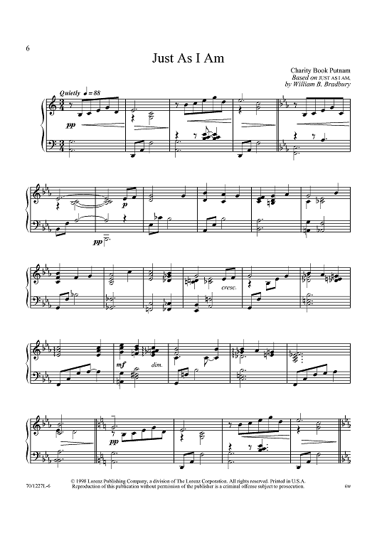 Digital Sheet Music for Just As I Am by William B. Bradbury, Charity Book Putnam scored for Piano Solo; id:433762