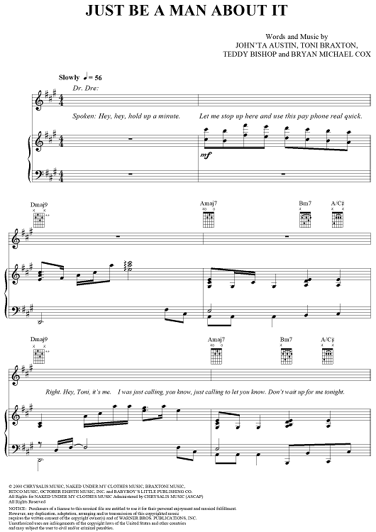 Digital Sheet Music for Just Be A Man About It by Toni Braxton, Teddy Bishop, Bryan-Michael Cox, Johnta Austin scored for Piano/Vocal/Chords; id:283043