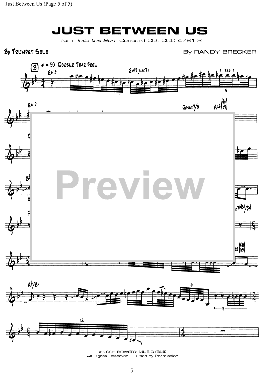 Digital Sheet Music for Just Between Us by Randy Brecker scored for Bb Trumpet/Piano; id:501991
