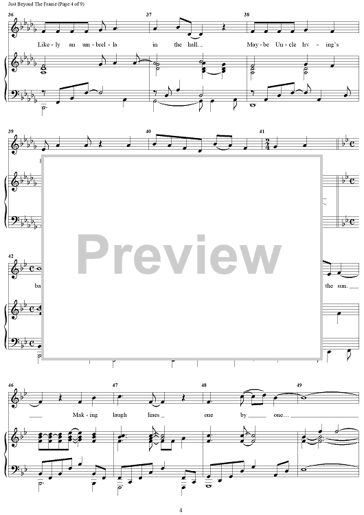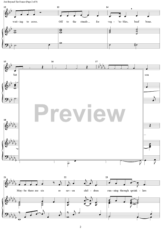 Digital Sheet Music for Just Beyond The Frame by Stephen Flaherty, Lynn Ahrens scored for Piano/Vocal/Chords; id:469381