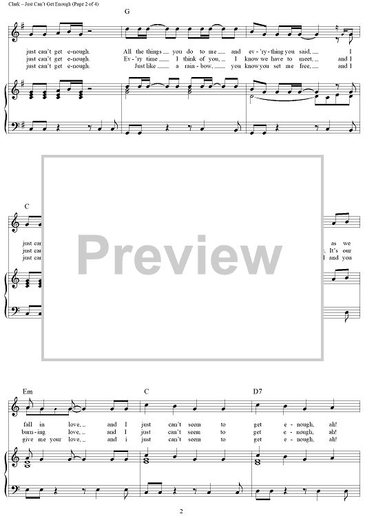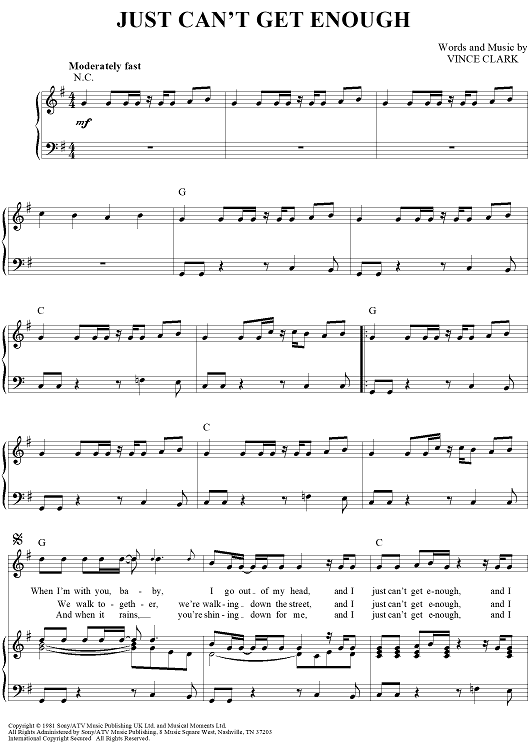Digital Sheet Music for Just Can't Get Enough by Depeche Mode, Vince Clark scored for Piano/Vocal/Chords; id:365435