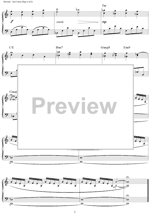 Digital Sheet Music for Just Cause (Main Title) by James Newton Howard scored for Piano Solo; id:115823