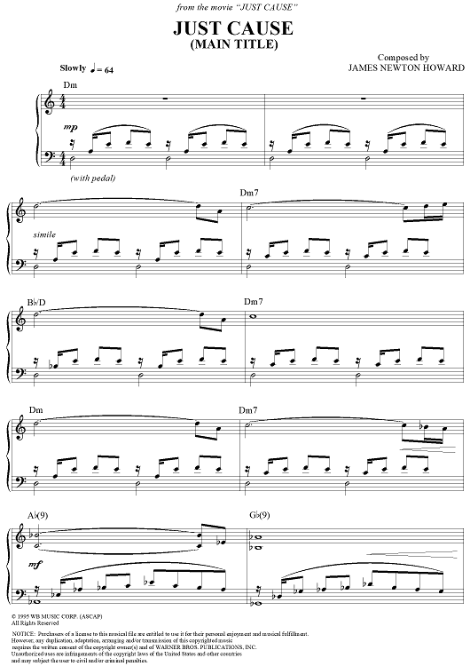 "Just Cause (Main Title)" Sheet Music by James Newton Howard