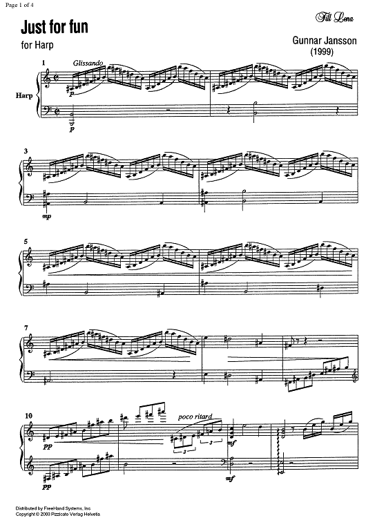 Digital Sheet Music for Just for fun by , Gunnar Jansson scored for Harp Solo; id:349772