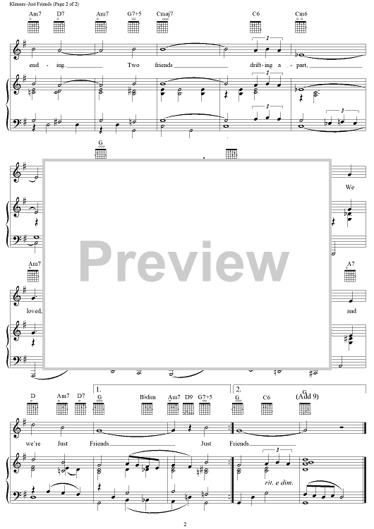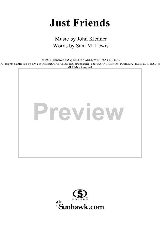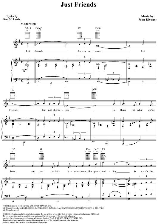 Digital Sheet Music for Just Friends by Sarah Vaughan, John Klenner, Samuel M. Lewis scored for Piano/Vocal/Chords; id:113315