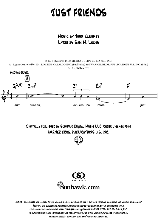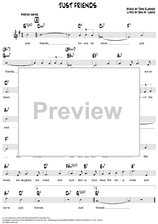 Digital Sheet Music for Just Friends by John Klenner, Samuel M. Lewis scored for Lead Sheet; id:307505