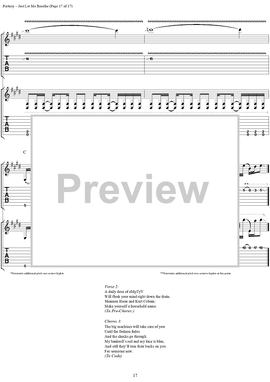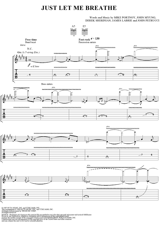 Digital Sheet Music for Just Let Me Breathe by John Myung, Michael Portnoy, Derek Sherinian, Dream Theater, John Petrucci, James LaBrie scored for Guitar Tab/Vocal; id:113853