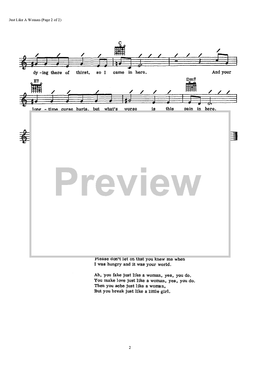 Digital Sheet Music for Just Like A Woman by Bob Dylan scored for Lead Sheet; id:466300
