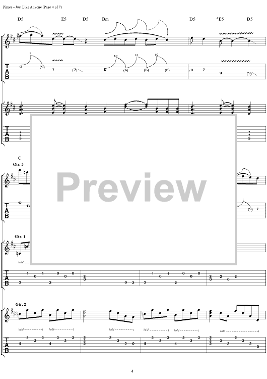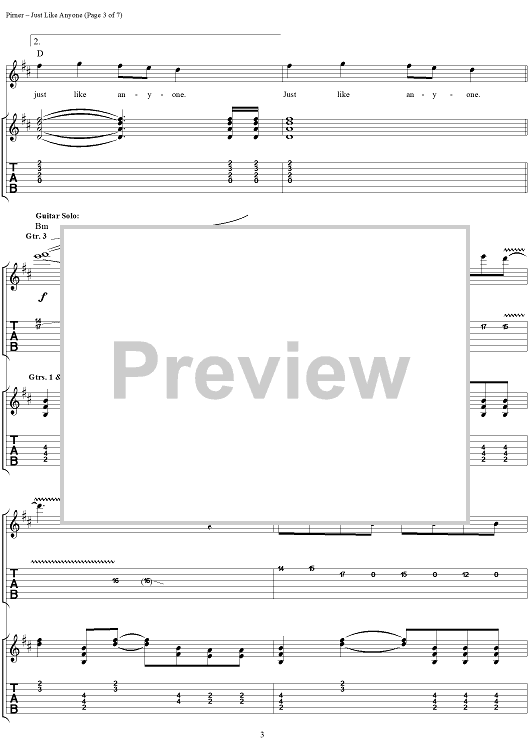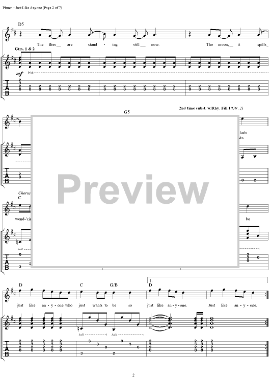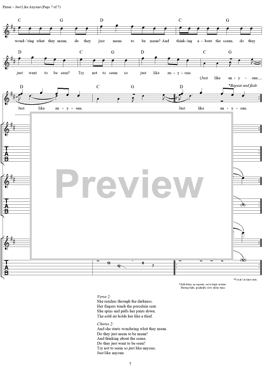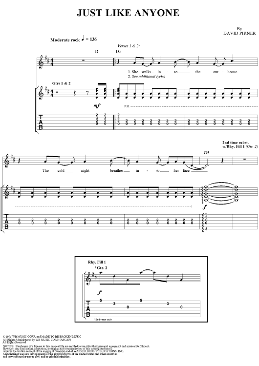 Digital Sheet Music for Just Like Anyone by David Pirner, Soul Asylum scored for Guitar Tab/Vocal; id:113950