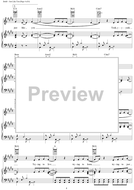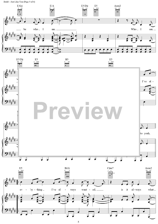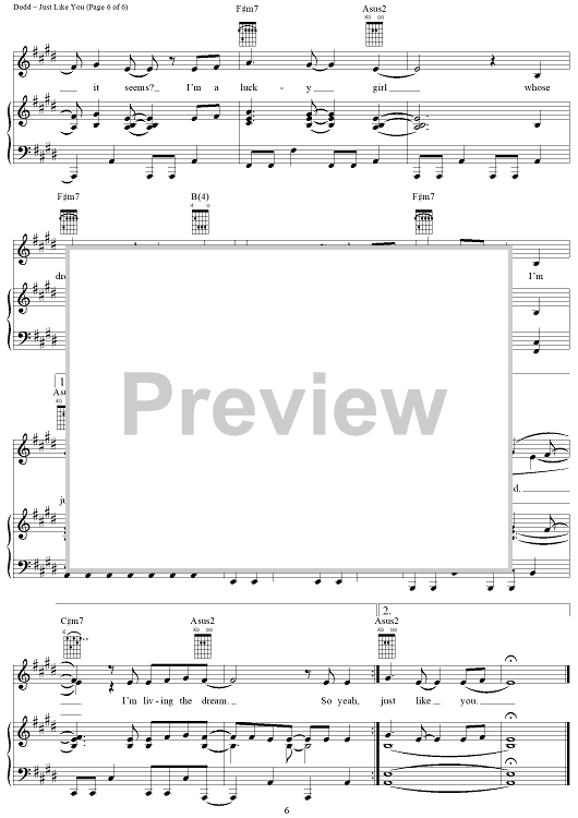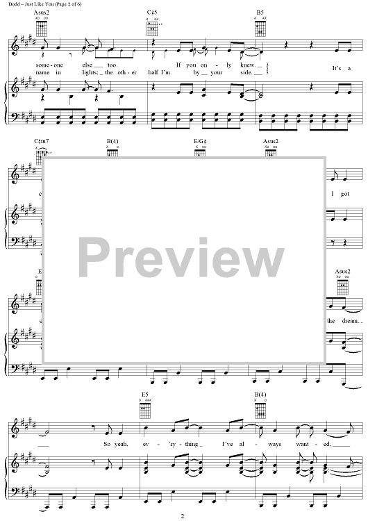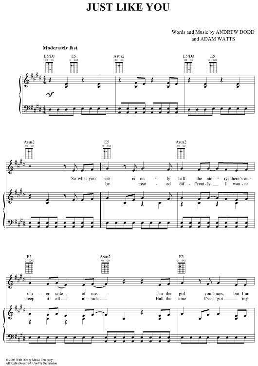 Digital Sheet Music for Just Like You by Hannah Montana, Adam Watts, Andy Dodd scored for Piano/Vocal/Chords; id:366977