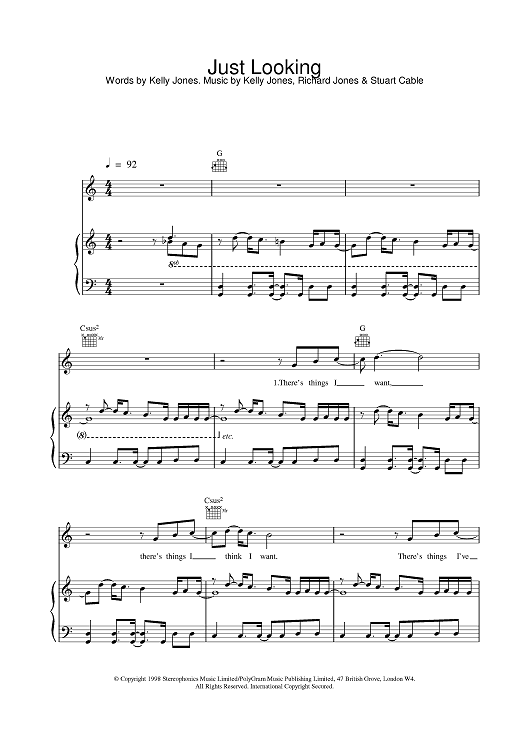 Digital Sheet Music for Just Looking by Stereophonics scored for Piano/Vocal/Chords; id:379080