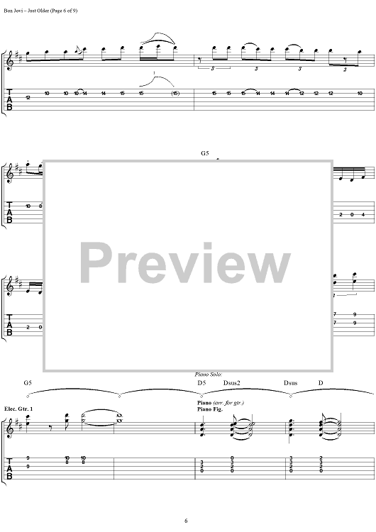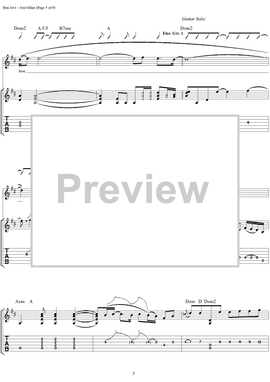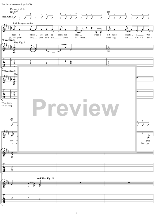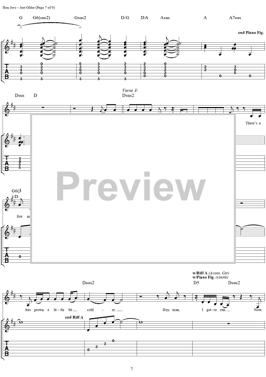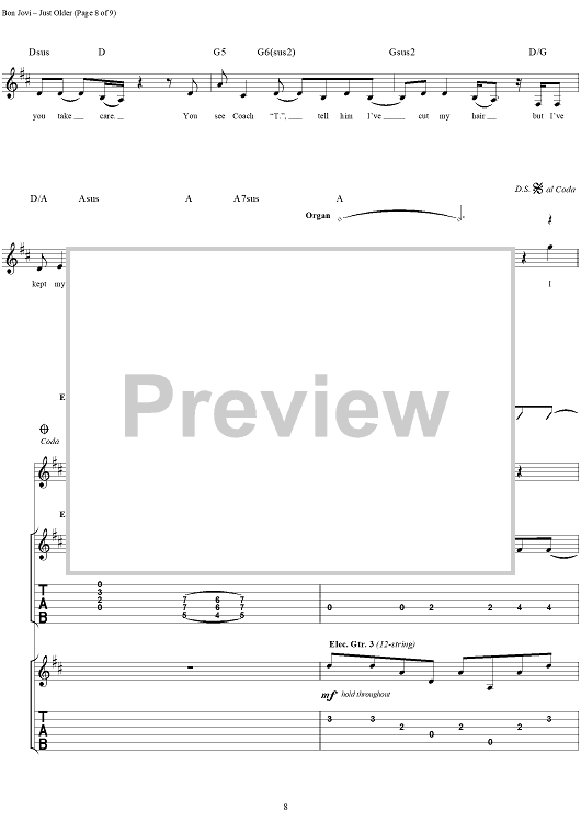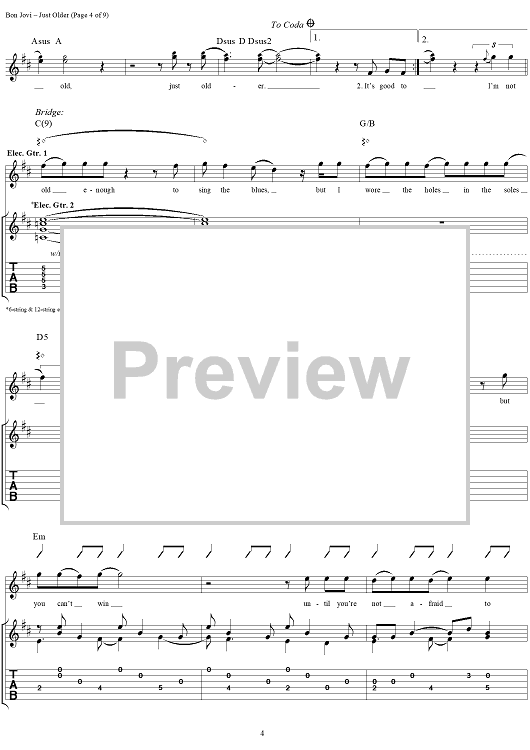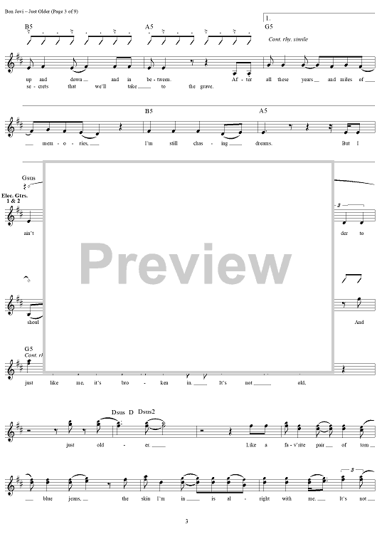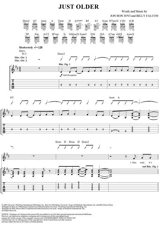 "Just Older" Sheet Music by Bon Jovi
