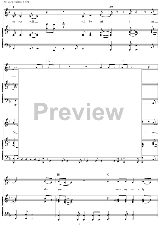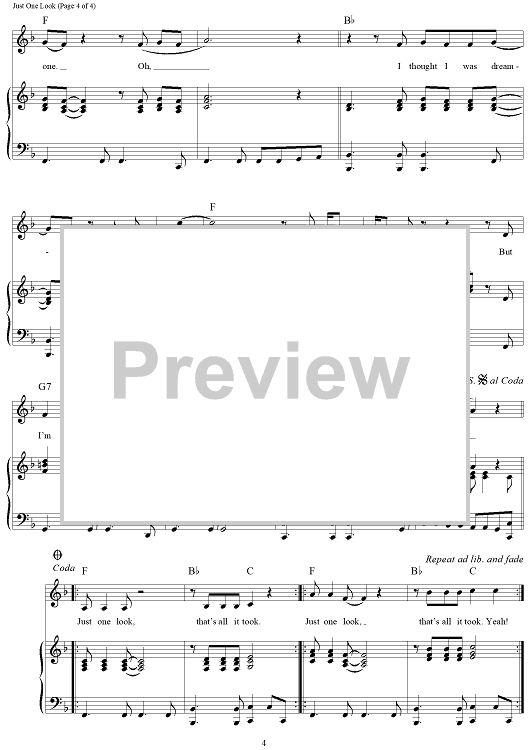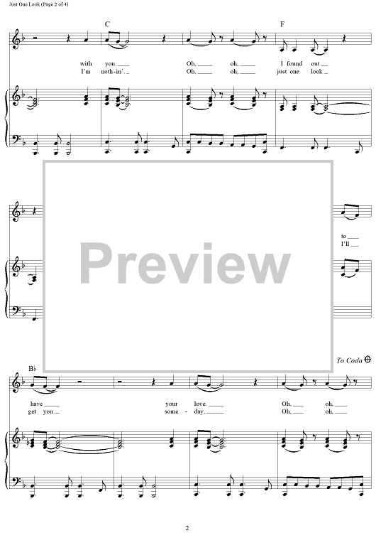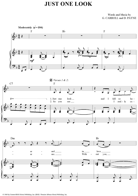 Digital Sheet Music for Just One Look by Gregory Carroll, Doris Payne, Doris Troy scored for Piano/Vocal/Chords; id:321135