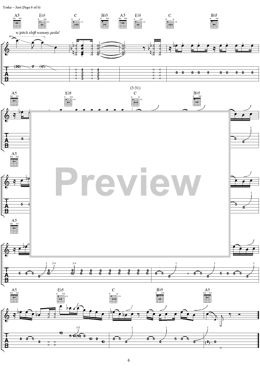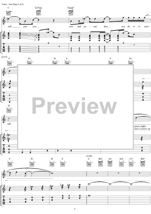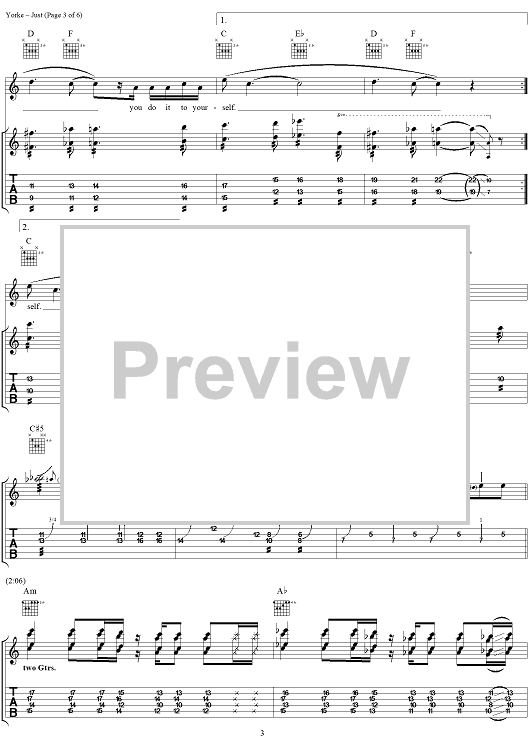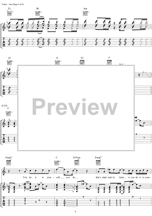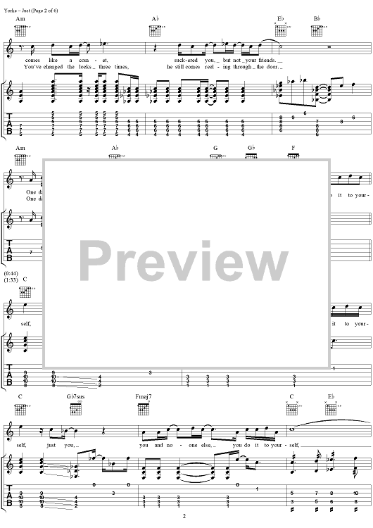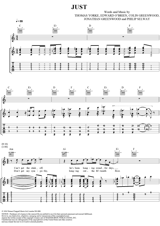 Digital Sheet Music for Just by Thomas Yorke, Jonathan Greenwood, Philip Selway, Coz, Edward O'Brien, Radiohead scored for Guitar Tab/Vocal; id:297022