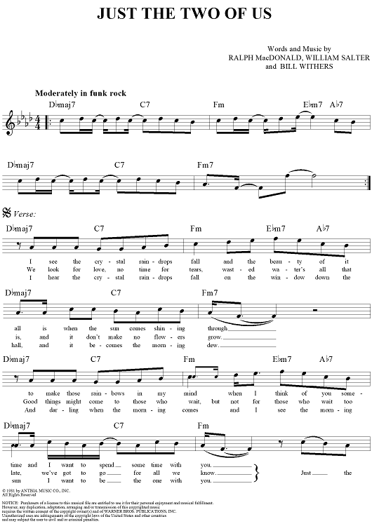 Digital Sheet Music for Just the Two of Us by William Salter, Ralph MacDonald, Bill Withers, Grover Washington Jr. scored for Lead Sheet; id:112673