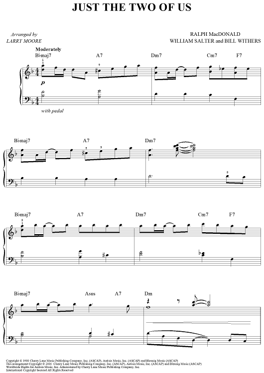 Digital Sheet Music for Just The Two Of Us by William Salter, Ralph MacDonald, Bill Withers, Larry Moore scored for Piano Solo; id:465463