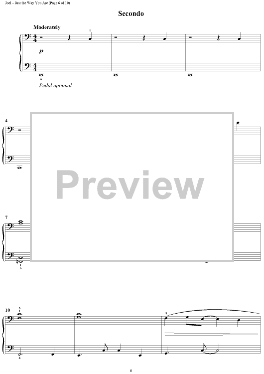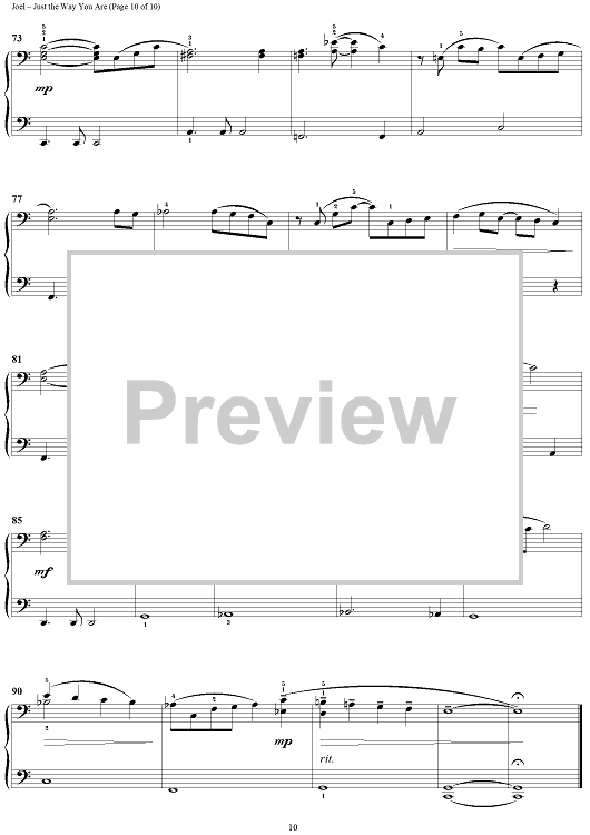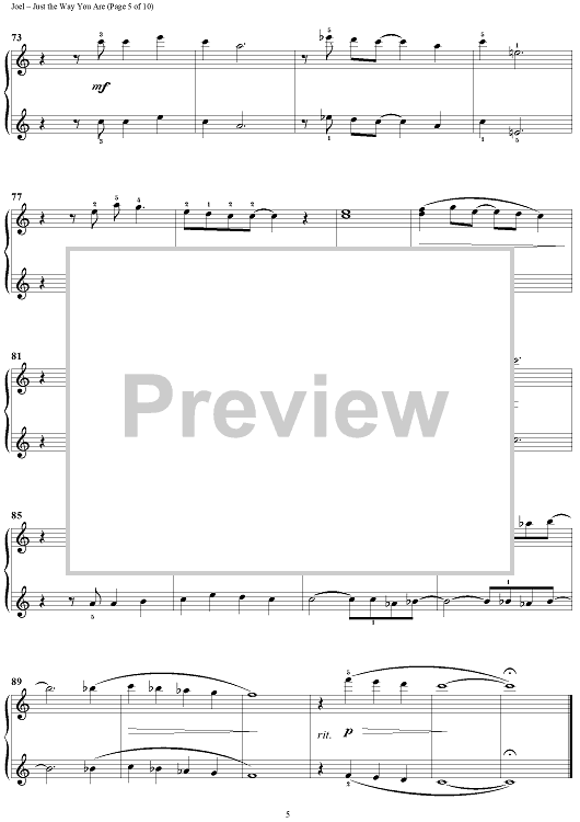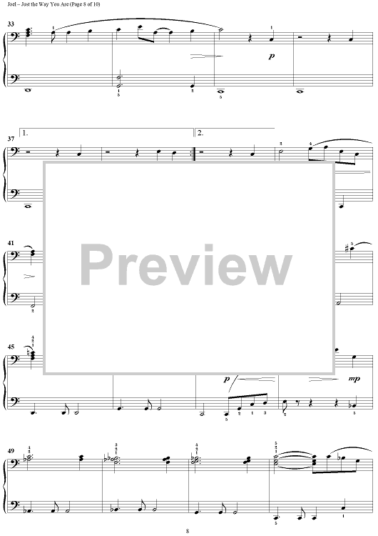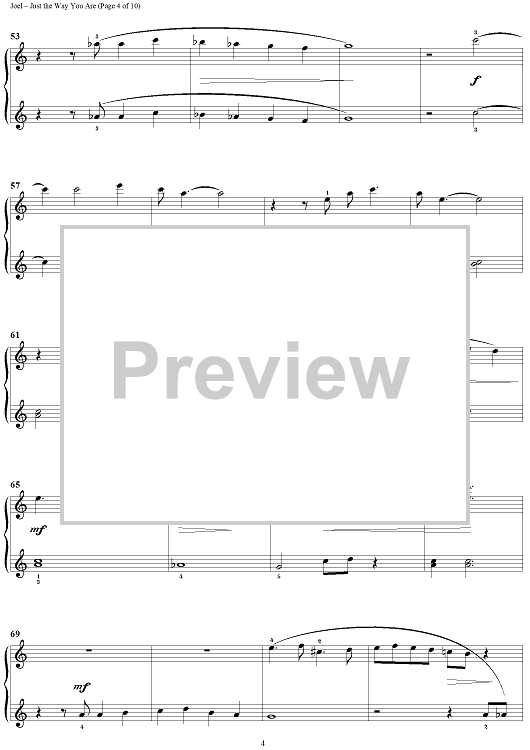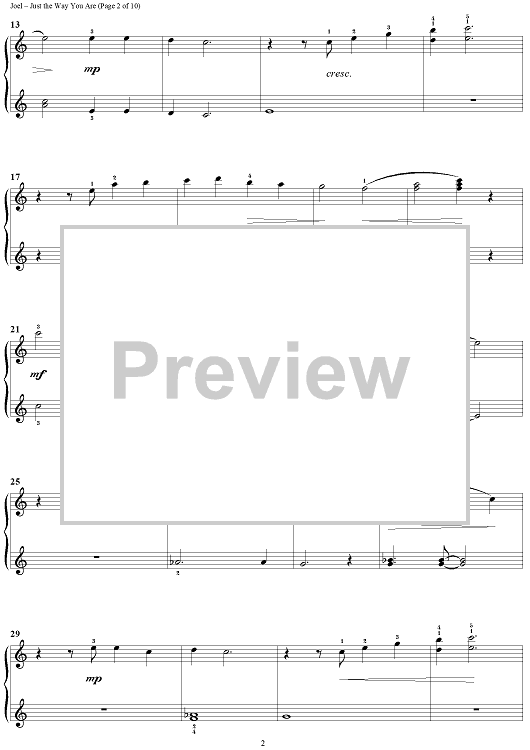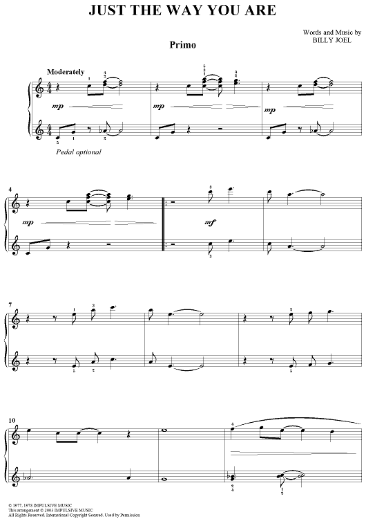 Digital Sheet Music for Just the Way You Are by Billy Joel scored for 1 Piano, 4 Hands; id:372938