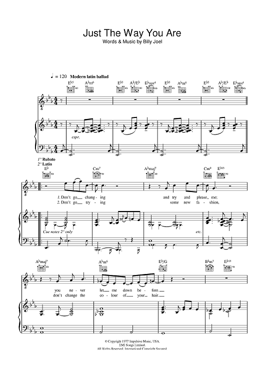 Digital Sheet Music for Just The Way You Are by Billy Joel, Diana Krall scored for Piano/Vocal/Chords; id:376101
