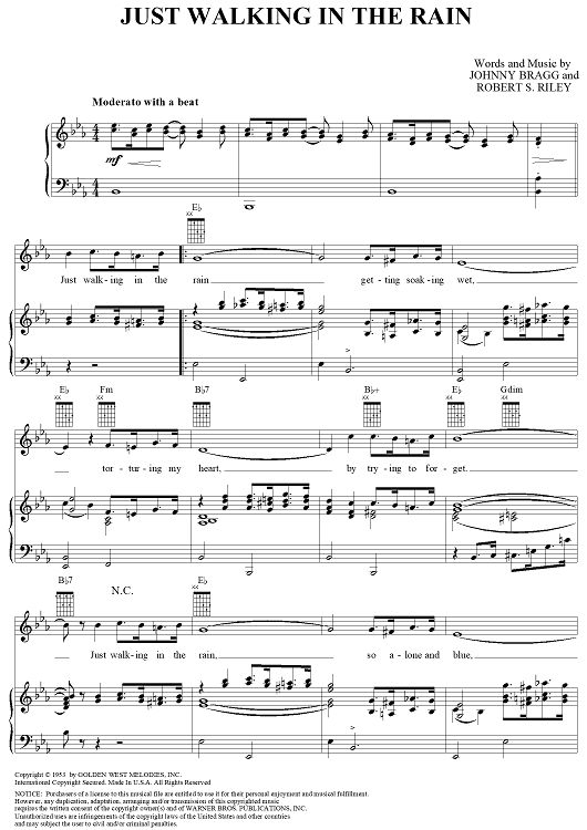Digital Sheet Music for Just Walking in the Rain by Robert S. Riley, Johnny Bragg, Johnnie Ray scored for Piano/Vocal/Chords; id:125724