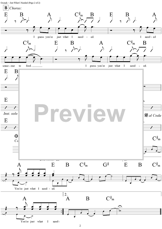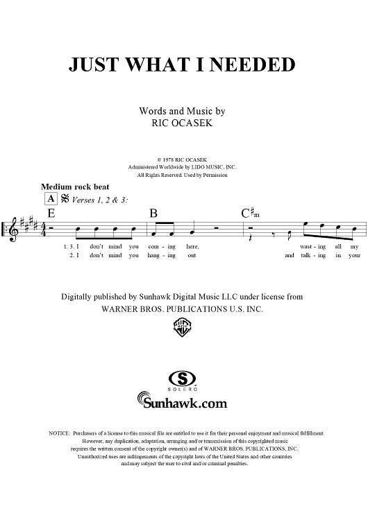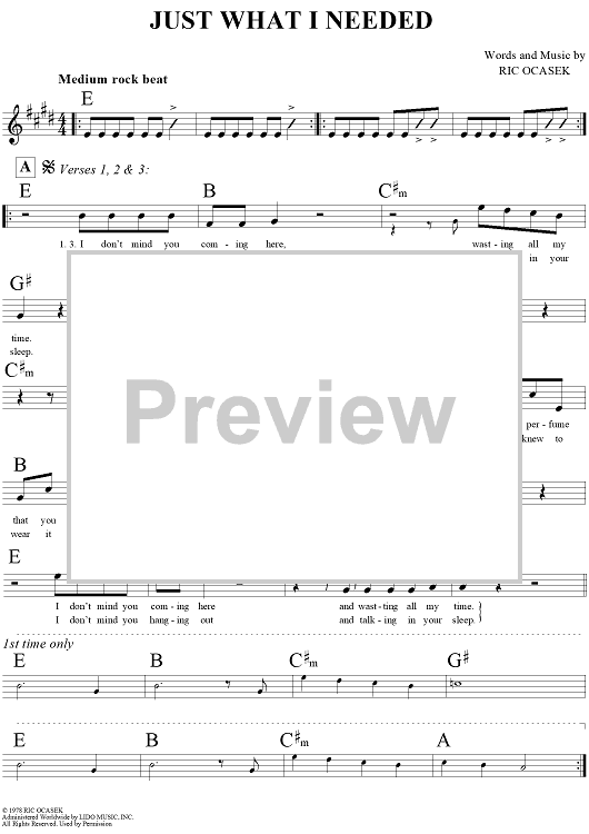 Digital Sheet Music for Just What I Needed by Ric Ocasek, The Cars scored for Lead Sheet; id:293978