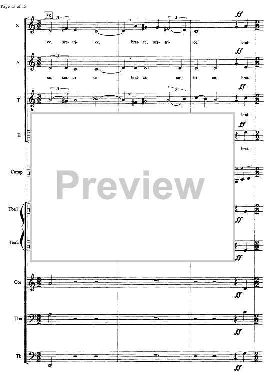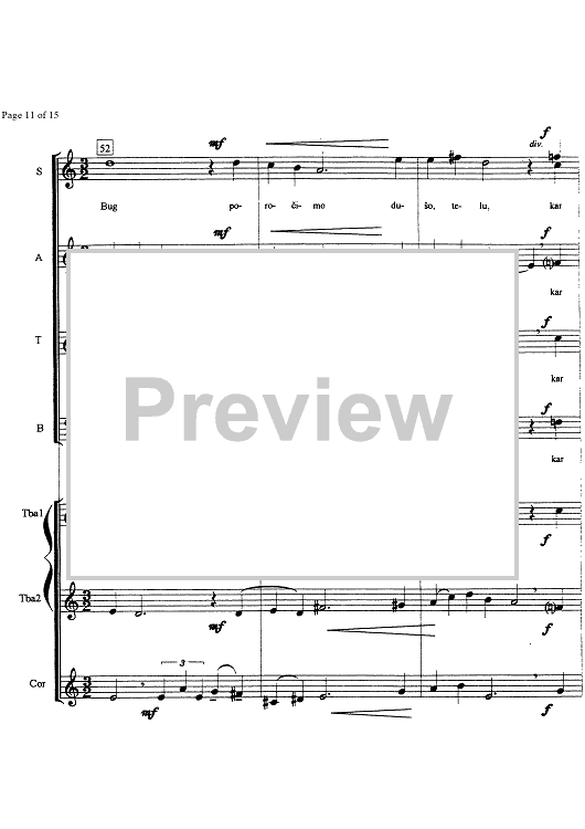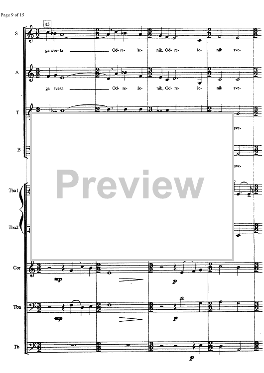 Digital Sheet Music for Jutranja pesem - Score by , Uros Krek scored for Choir/Brass Quintet/Bells; id:335510