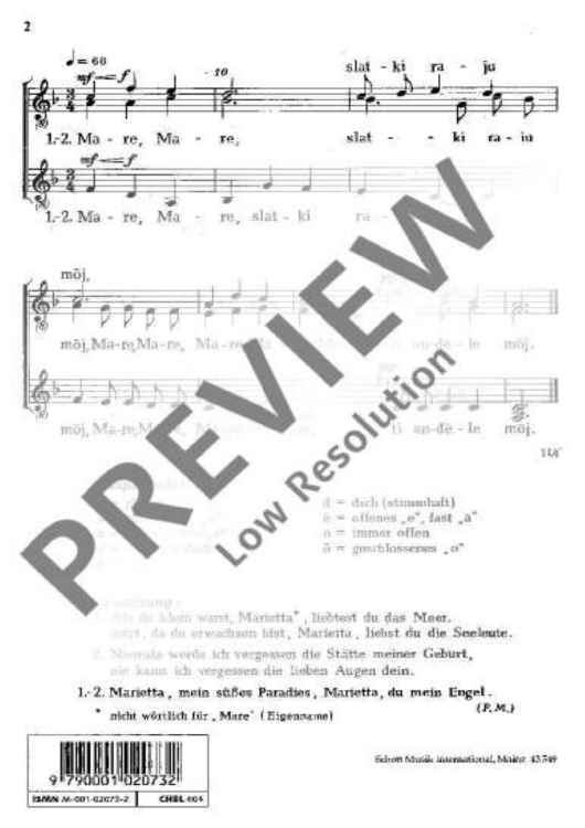 "Kad si bila mala Mare - Choral Score" Sheet Music by Franz Moeckl