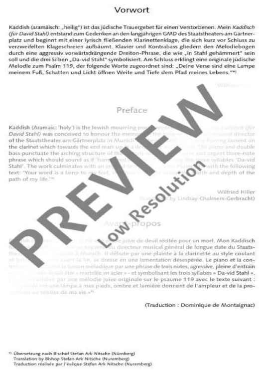 "Kaddisch - Performing Score" Sheet Music by Wilfried Hiller