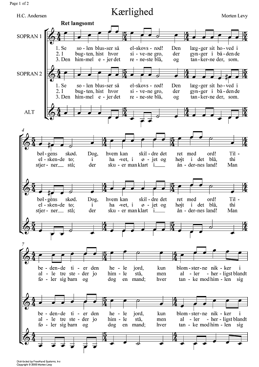 Digital Sheet Music for Kaerlighed by , Morten Levy scored for Girls' Choir; id:354232